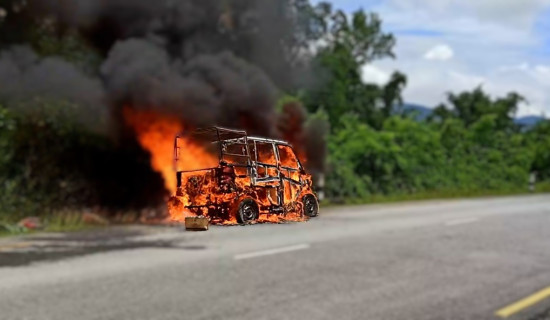 गुडिरहेको गाडीमा आगो लाग्दा चालक घाइते, यात्रु सकुशल