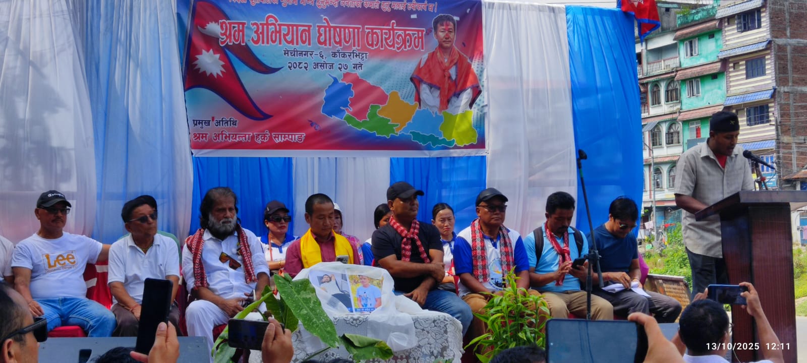 उहाँले श्रम अभियान घोषणा कार्यक्रमलाई सम्बोधन गर्नु अघि मेची पुलमा पुगेर राष्ट्रिय झण्डा फहराउनु भएको थियो । उहाँलाई सुन्न ठूलो संख्यामा सर्वसाधारण र समर्थकको उपस्थिति रहेको थियो ।