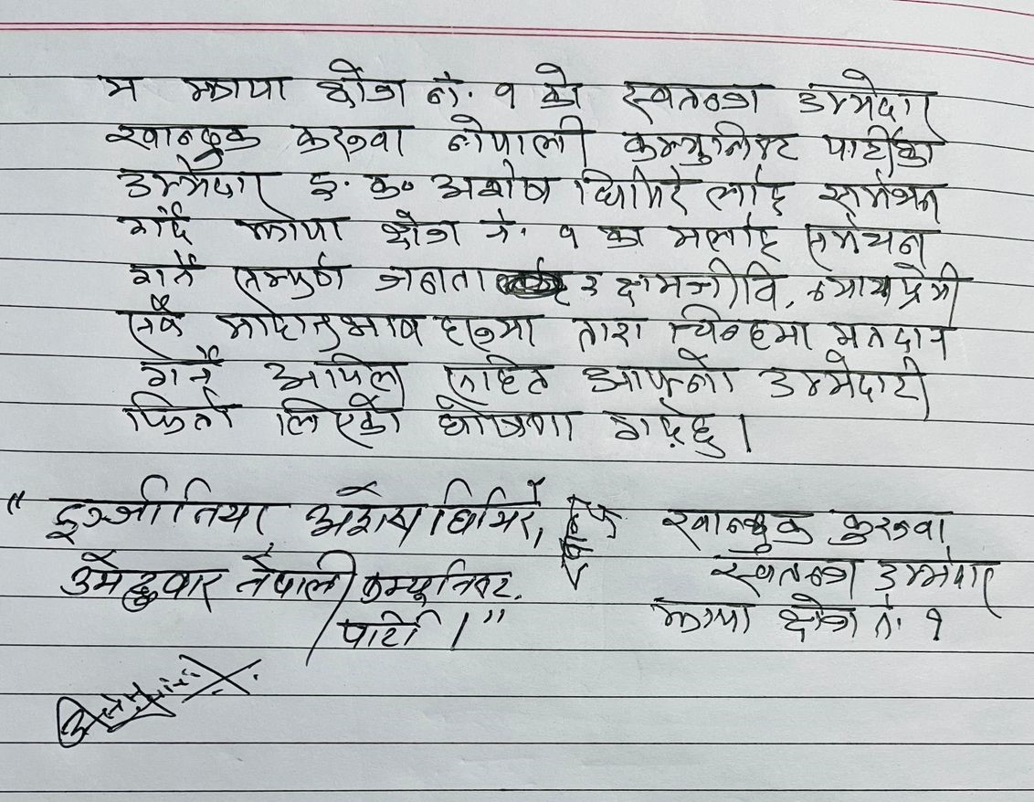 मेचीनगर वडा नं. ७ निवासी करुवाले आज साँझ पत्रकारहरुको उपस्थितिमा उक्त घोषणा गर्नु भएको हो ।